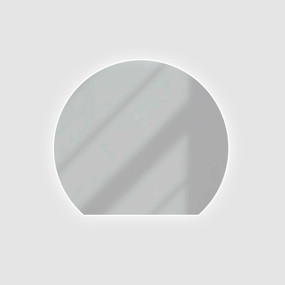 Semi round mirror with baggrounds lighting, 100x90 cm