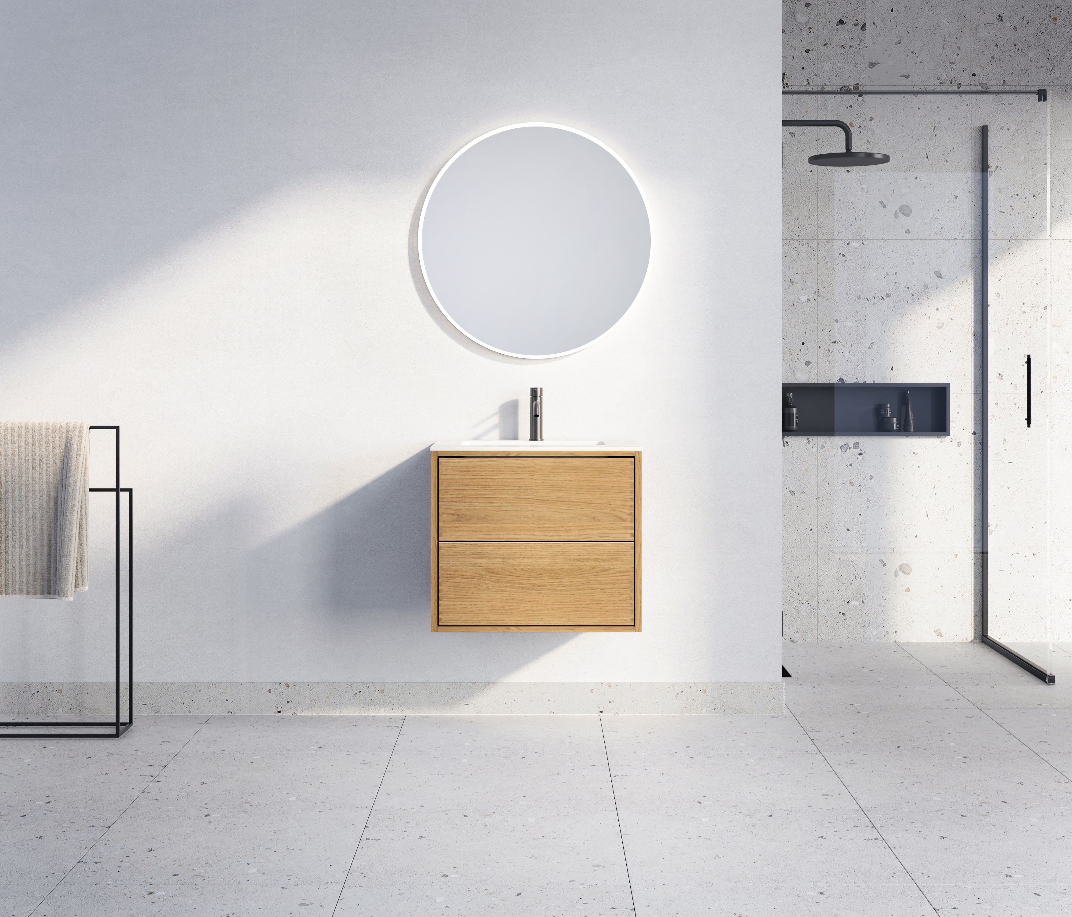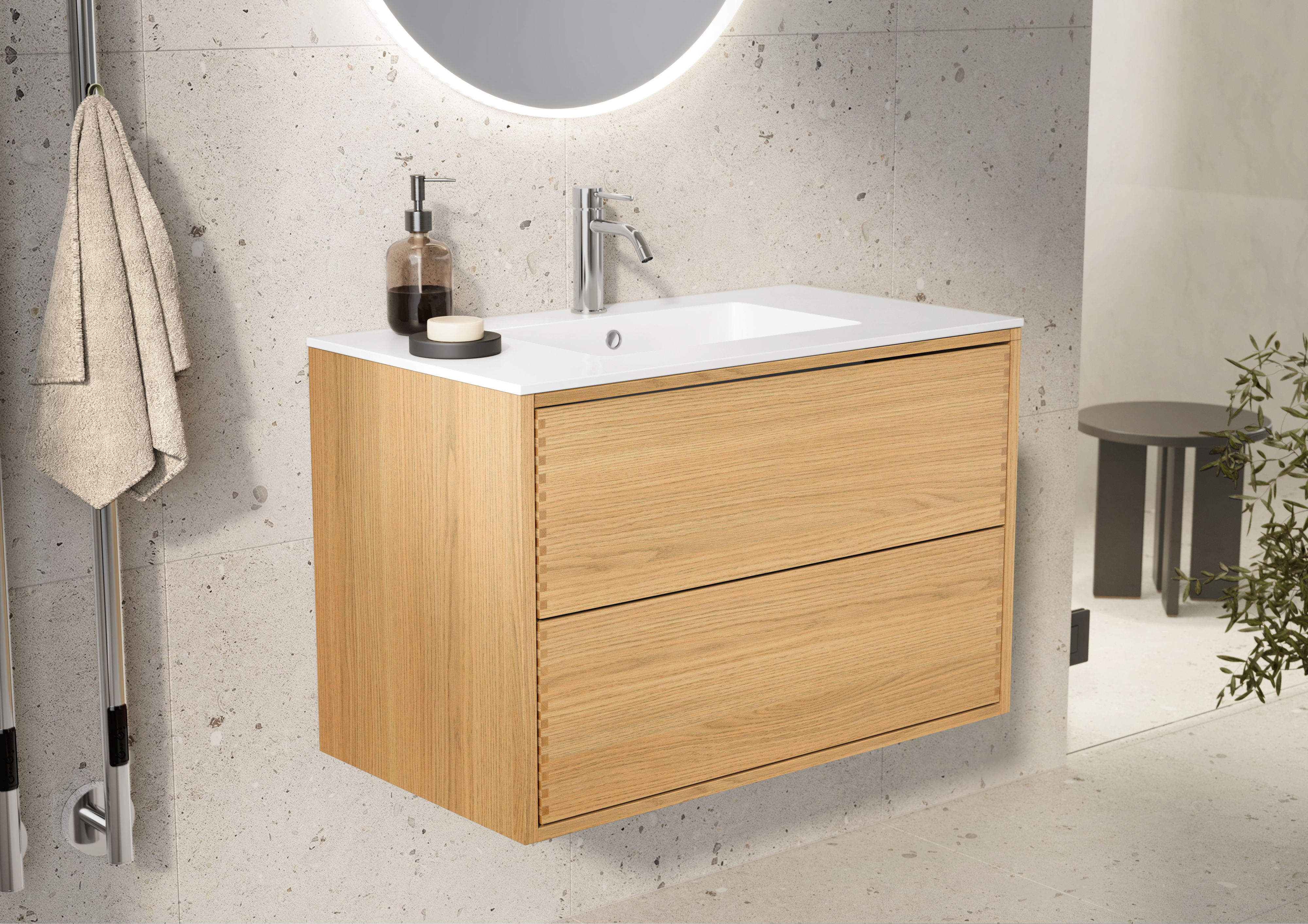 With its Nordic character, the vanity is easy to combine with different bathroom styles – whether you prefer a clean, minimalist look or a cozy, nature-inspired atmosphere. The natural oak harmonizes beautifully with both white and dark sinks and can be complemented with different types of fittings in chrome, black, or brass.