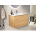 The vanity is made of natural oak, a material that highlights the beautiful grain of the wood while adding a warm and inviting atmosphere to the room. The natural wood surface is treated to withstand moisture while preserving its authentic and organic character. This gives the vanity unit an exclusive yet down-to-earth appearance, standing in contrast to more industrial bathroom solutions.