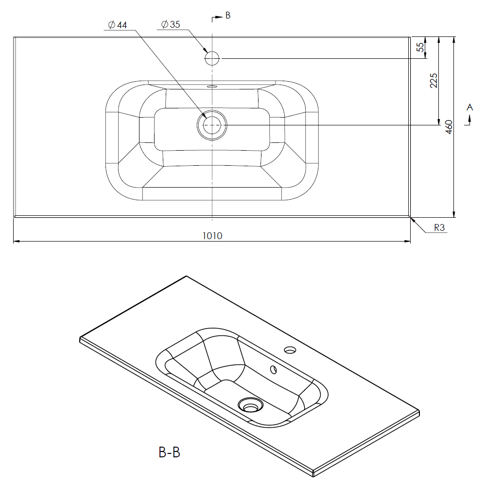 Trento solid surface basin 1010x460mm, mat white, suits Skagen/Parma/Prado