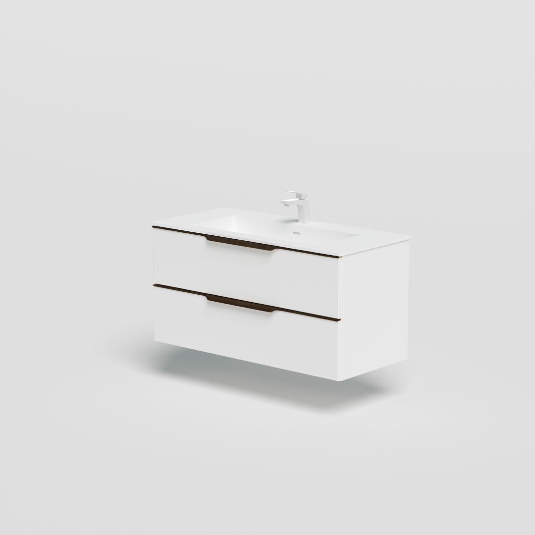 Wood vanity unit 100 cm, mat white / black oak handle