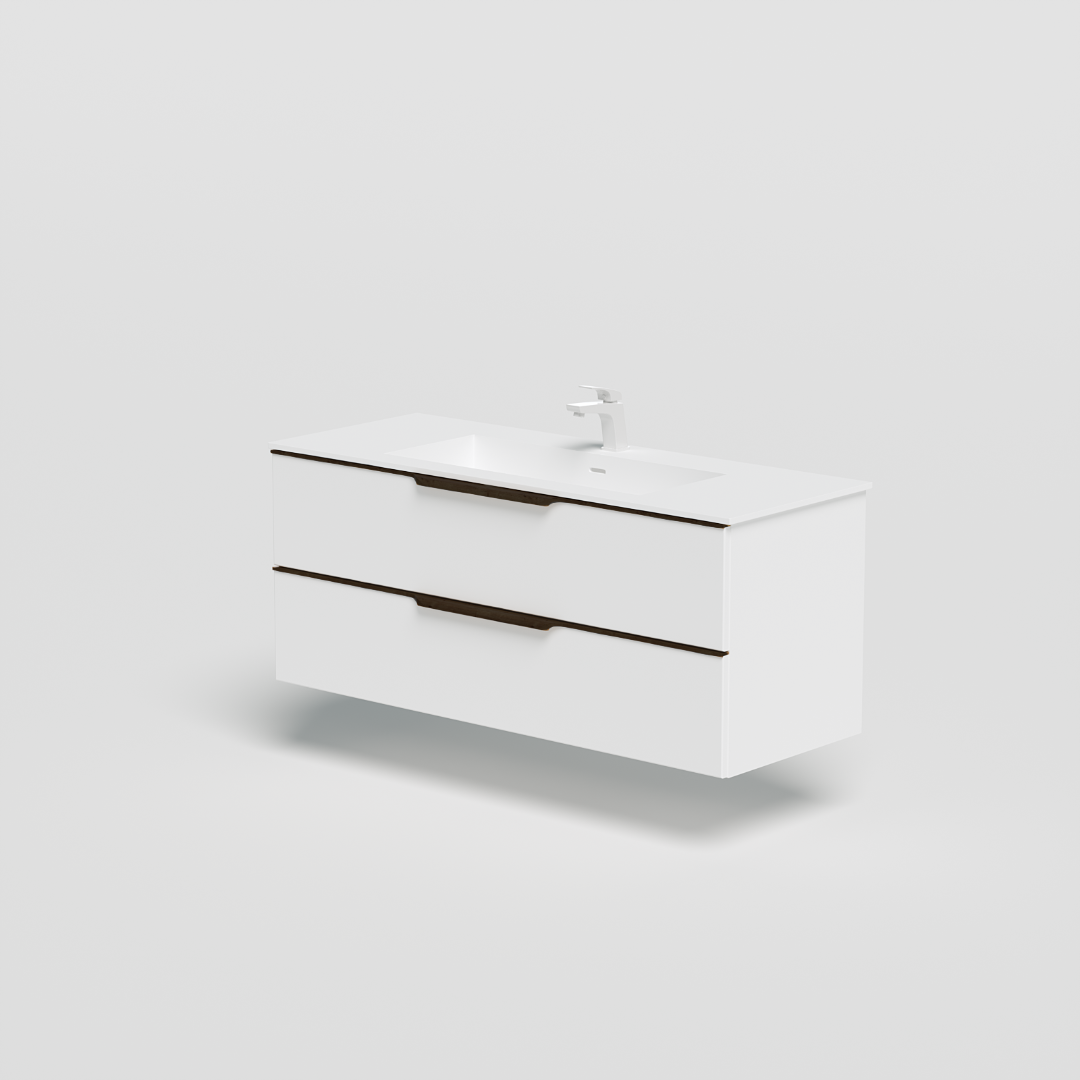 Wood vanity unit 120 cm, mat white / black oak handle
