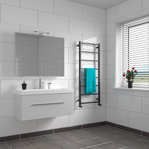 Hagen towel rail 1210x500mm, black straight, electric, prefilled with liqui
