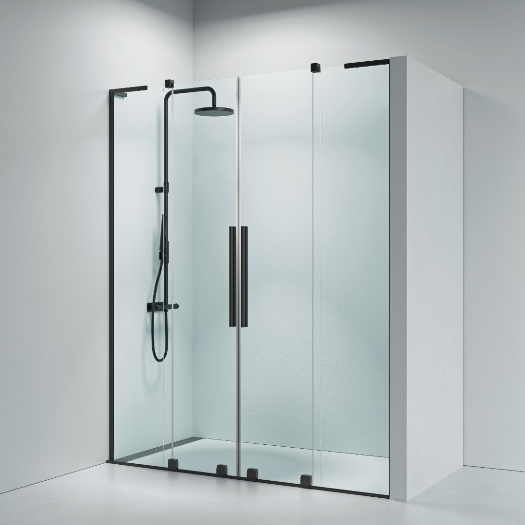 Faro 32 Sliding door niche solution 1400 mm8mm clear glass, matt black profiles