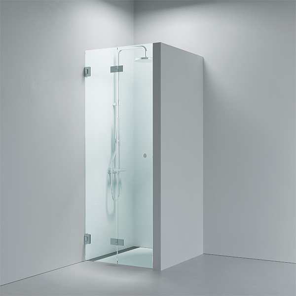 A folding door that can open both outwards and inwards. 8 mm safety glass with Easy Clean treatment. Standard height is 2000 mm to top of glass. Measure 'X' is from the corner to the outside of the glass.