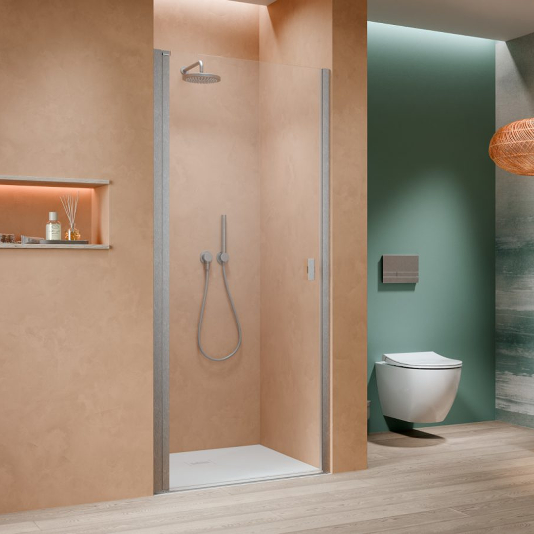 Noma 20 swing door left, 800 mm, 6 mm glass with brushed nickel profiles