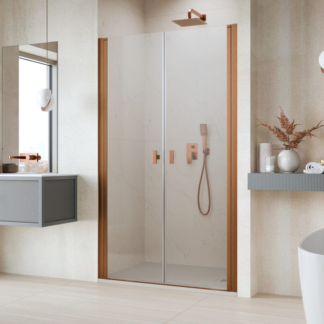 Noma 30 double swing doors, 1100 mm, 6 mm glass with brushed copper profiles