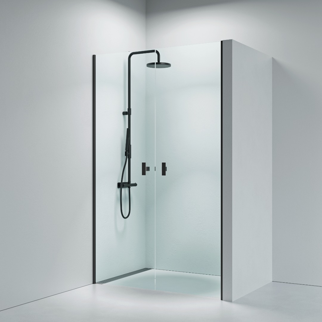 Noma 30 double swing doors 1100mm 6mm glass with mat black profiles
