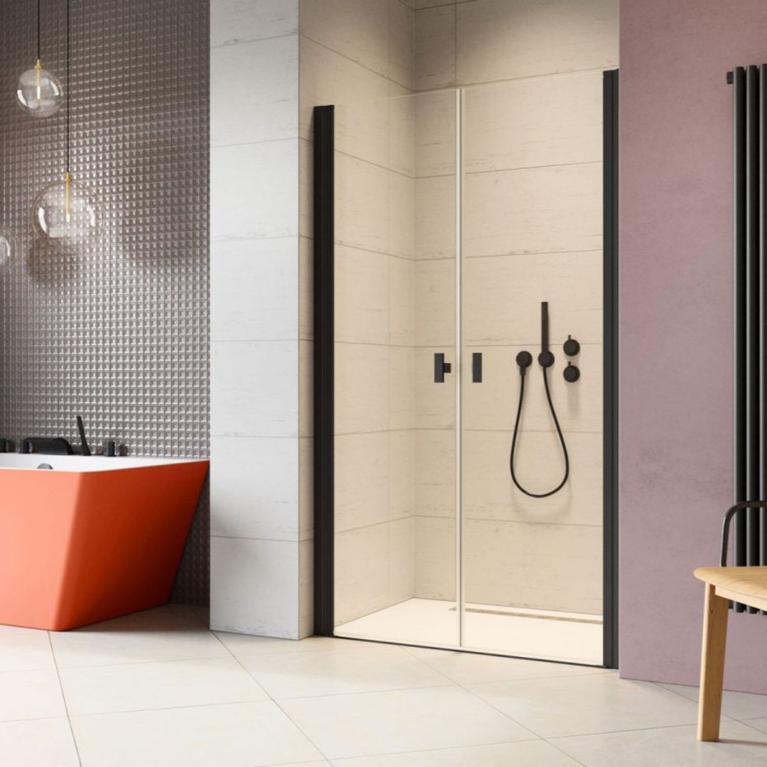 Noma 30 double swing doors 800mm 6mm glass with mat black profiles