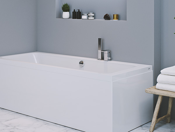 Ligro square bath mixer with hand shower chrome for installing on bath lip