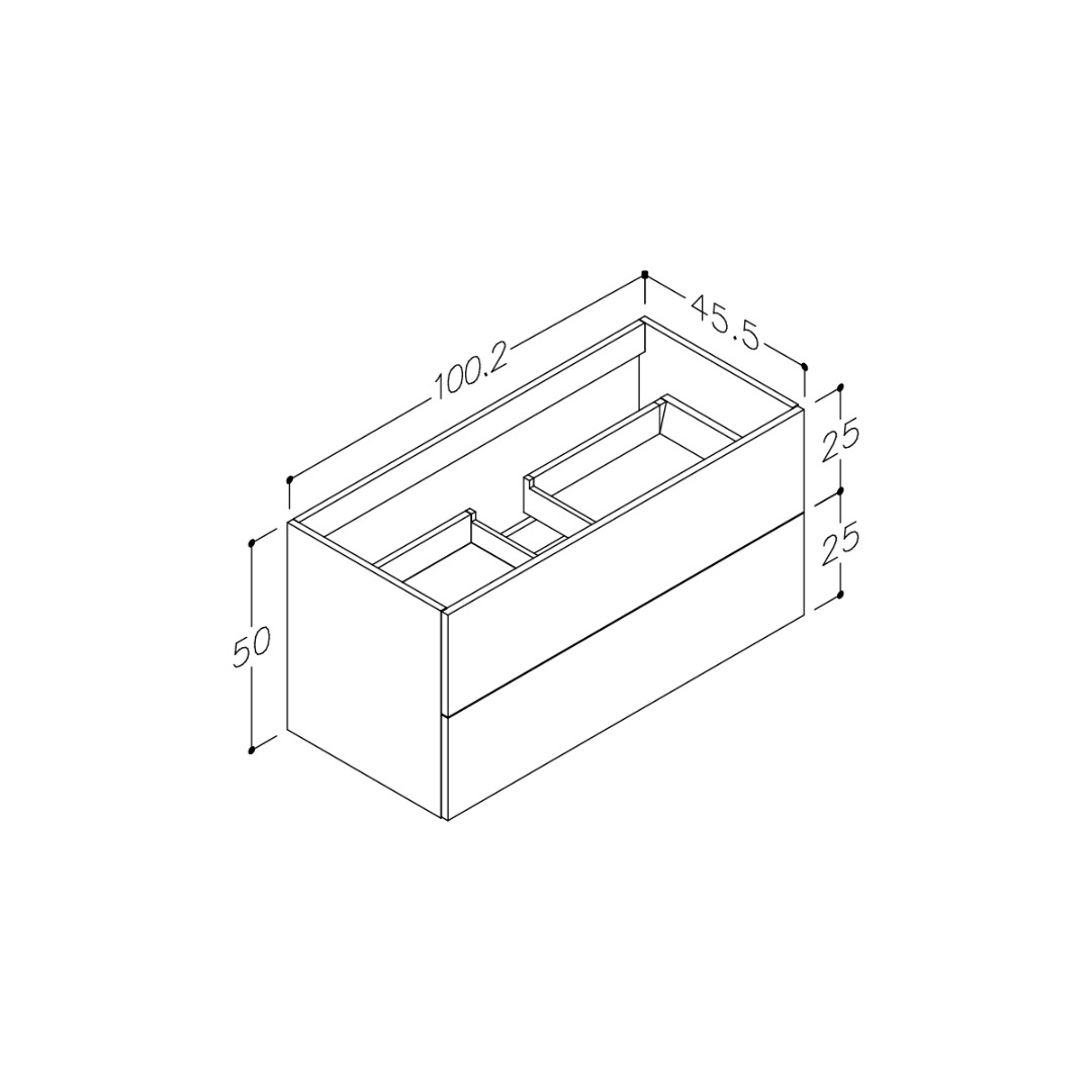 Parma servantskap 990x445mm, grå bardolino eik, 2 skuffer