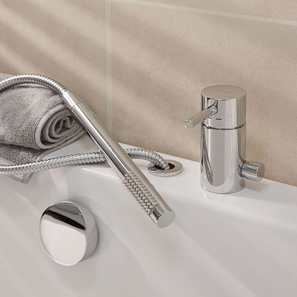 - Etgrebs-armatur med håndbruser og vandpåfyldning gennem overløb