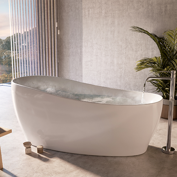 Badekar med ryglæn og afløb i fodenden. Iklusiv af- og overløbssæt.