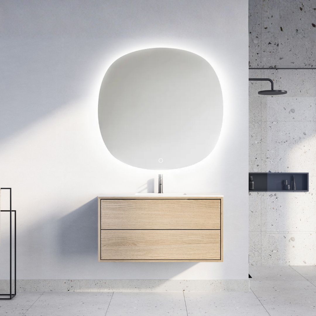Stadium spejl med baggrundsbelysning Ø100, med farvestyring, dimmer og dugfrit