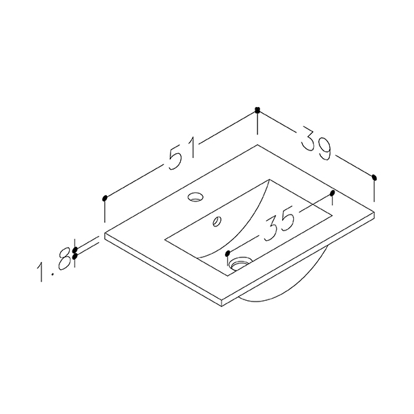 Laura porcelænsvask 510x390mm, 18mm tykt