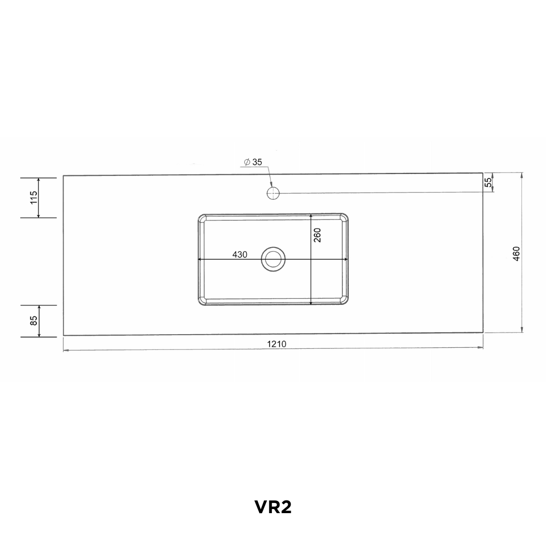 Reno Solid Surface vask, 121 x 46 x 1,2 cm, mat hvid, centreret.