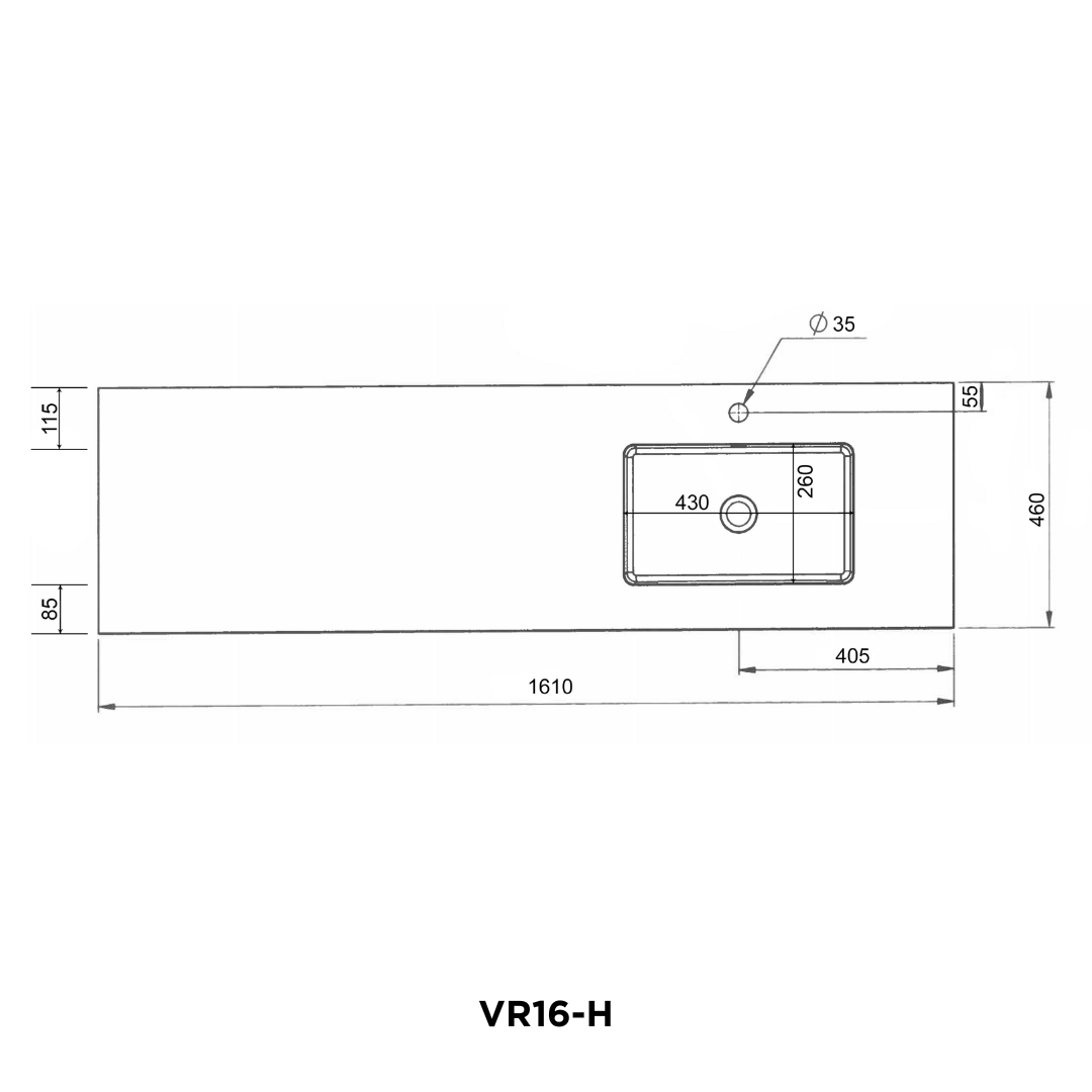 Reno Solid Surface vask, 161 x 46 x 1,2 cm, mat hvid, højrestillet.