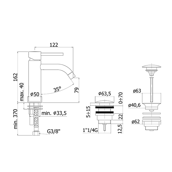 Ligro armatur till inbyggt handfat, lackerad mässing