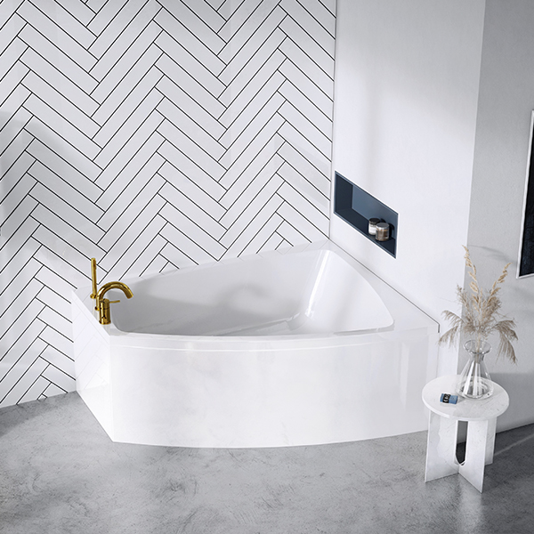 Ett asymmetriskt badkar, inkorporerat av nordisk minimalism och hög kvalitet. Finns i höger och vänster vednt version. Den rena designen talar till tiden och ger en fantastisk badupplevelse för alla sinnen. Perfekt för två personer.