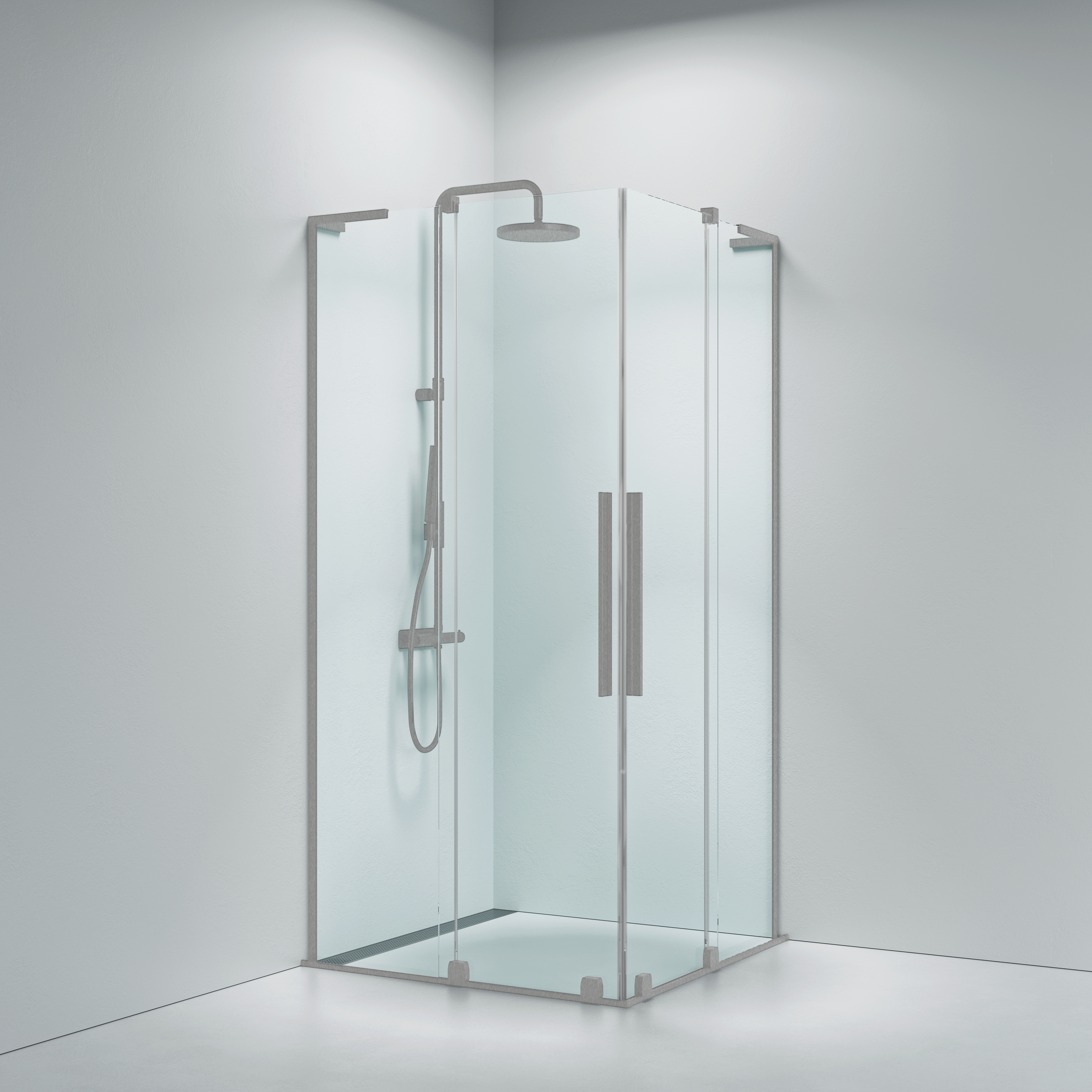 Faro 42 Skjutdörr hörnelösning 106x106cm, borstad nickel profiler