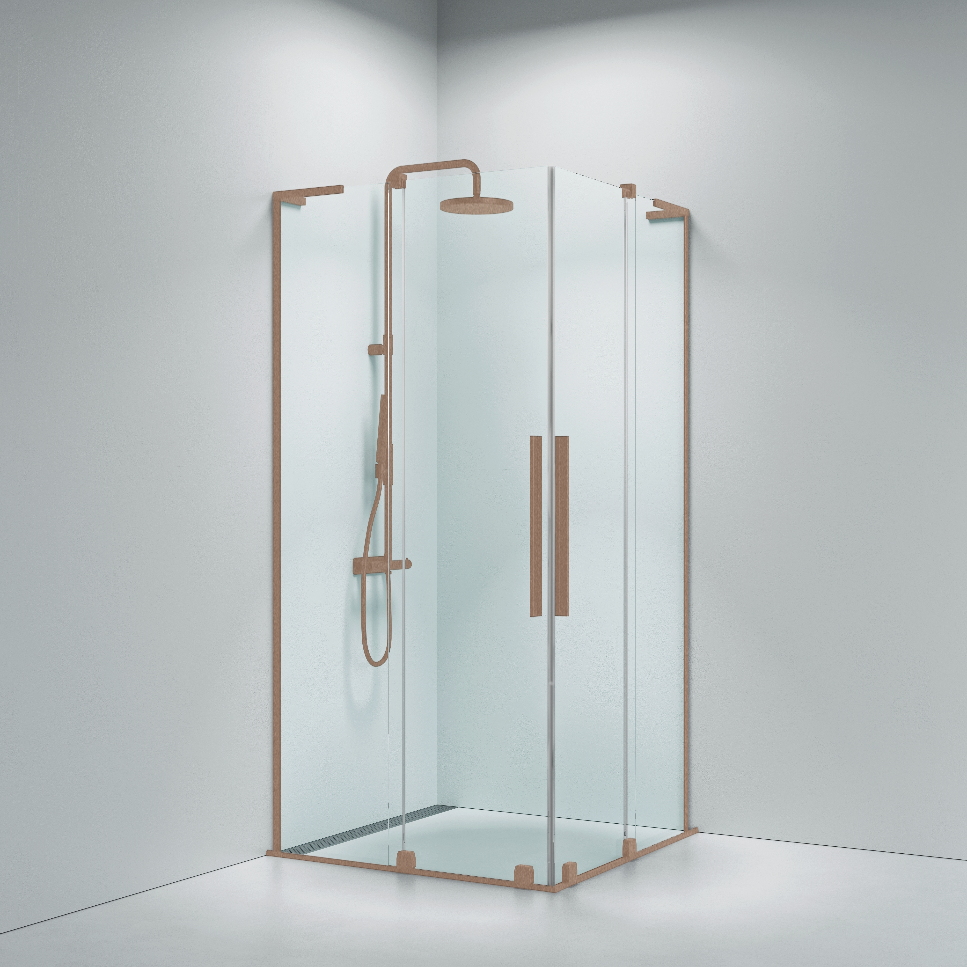 Faro 42 Skjutdörr hörnelösning 76x76cm, borstat kobbar profiler