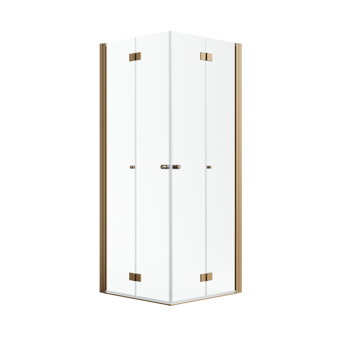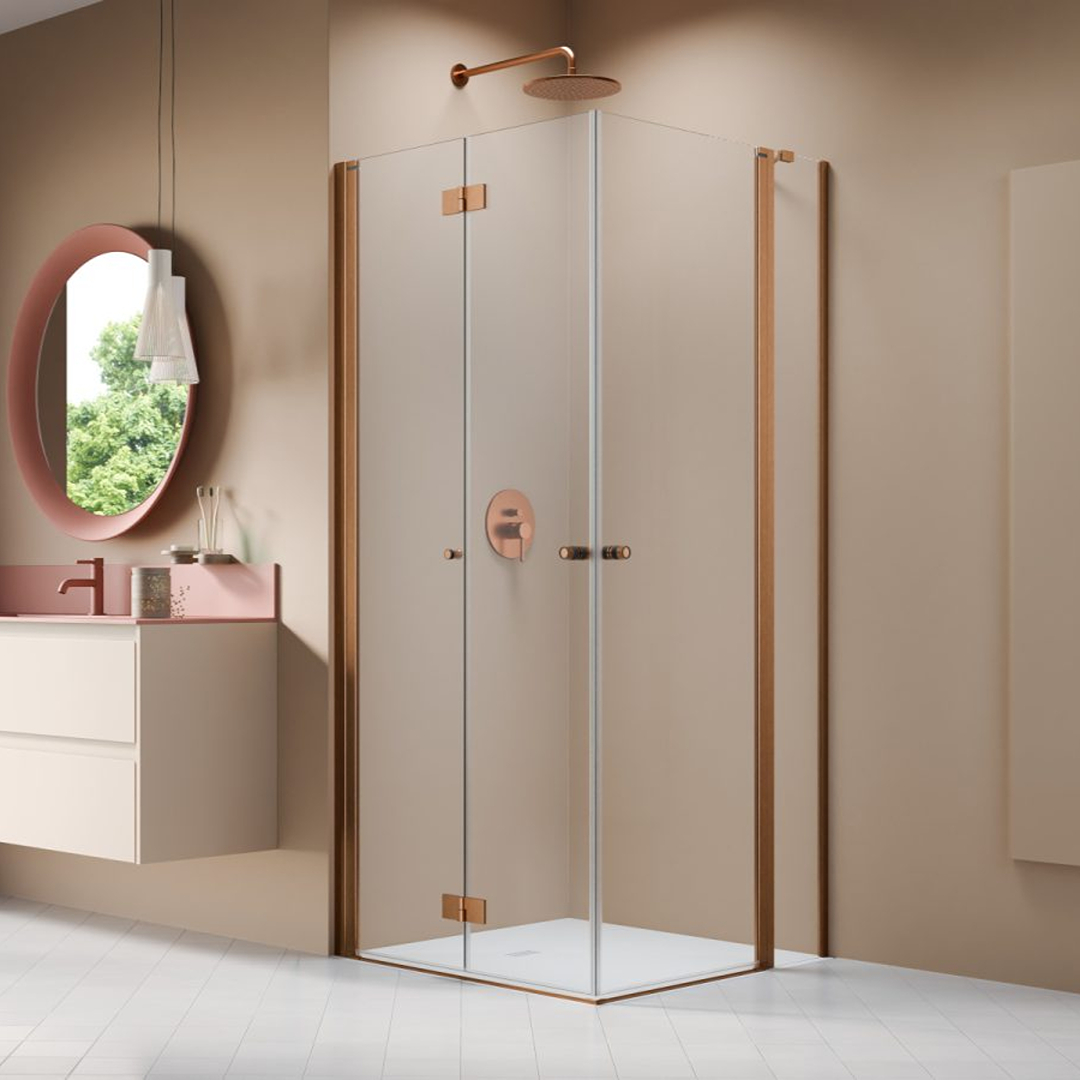 Noma 110 fyrkantig flex, STD 800mm, 2 raka flexdörrar, 6mm klart glas, borstad kopparprofiler