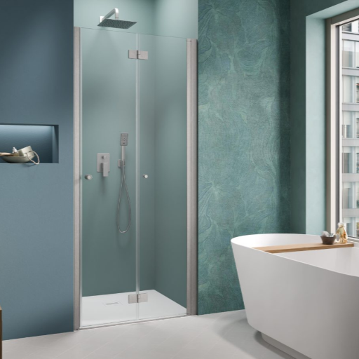Noma 180 nischvikdörr, 800mm höger 6mm glas, borstad nickelprofiler