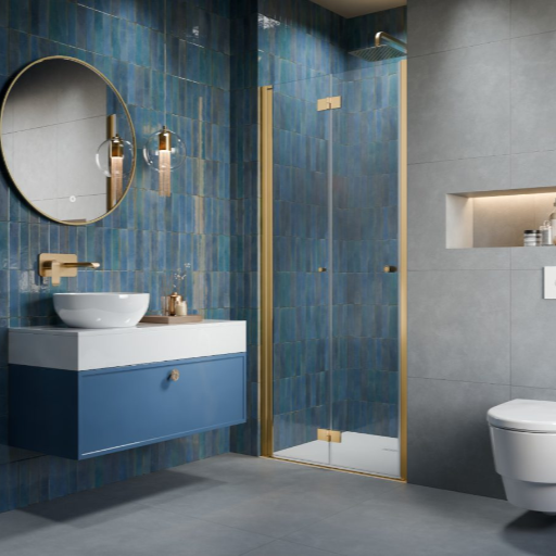 Noma 180 nischvikdörr, 800mm vänster 6mm glas, mässingsprofiler