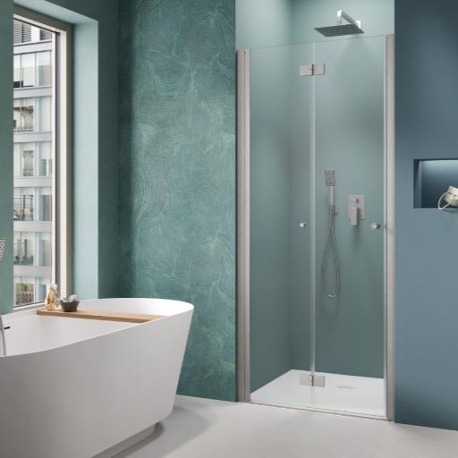 Noma 180 nischvikdörr, 900mm vänster 6mm glas, borstad nickelprofiler