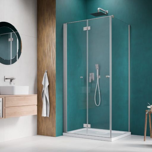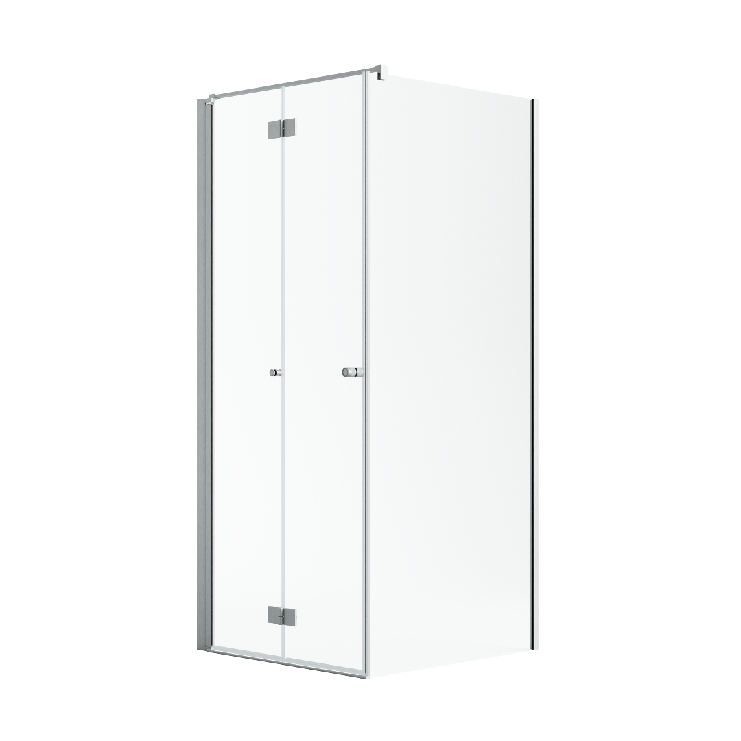 Noma 195 fast vägg med vikdörr, 800mm vänster 6mm glas, borstad nickelprofiler