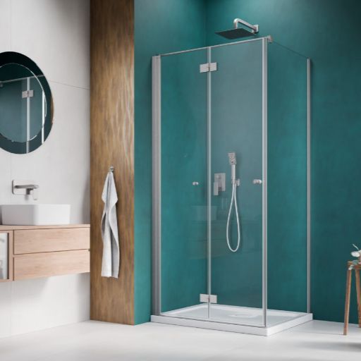 Noma 195 fast vägg med vikdörr, 900mm vänster 6mm glas, borstad nickelprofiler