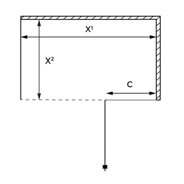 Mått 'X' är från hörnet till utsidan av glaset.