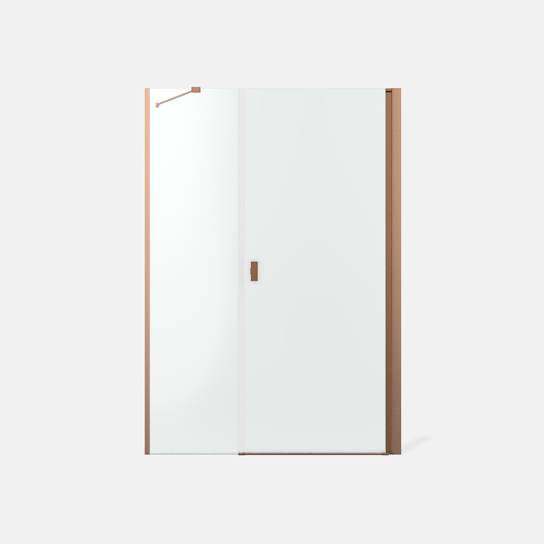 Noma 45 svängdörr höger med sidopanel 1000mm 6mm glas med borstad kopparprofiler