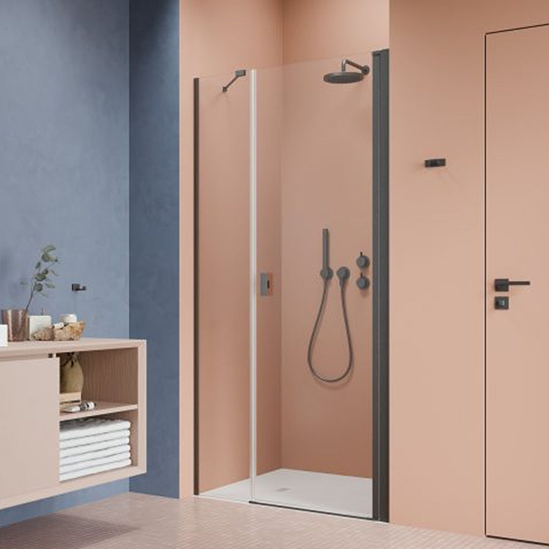 Noma 45 svängdörr höger med sidopanel 1100mm 6mm glas med gunmetalprofiler