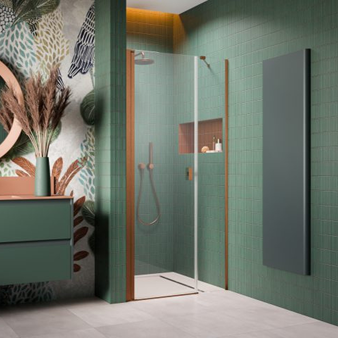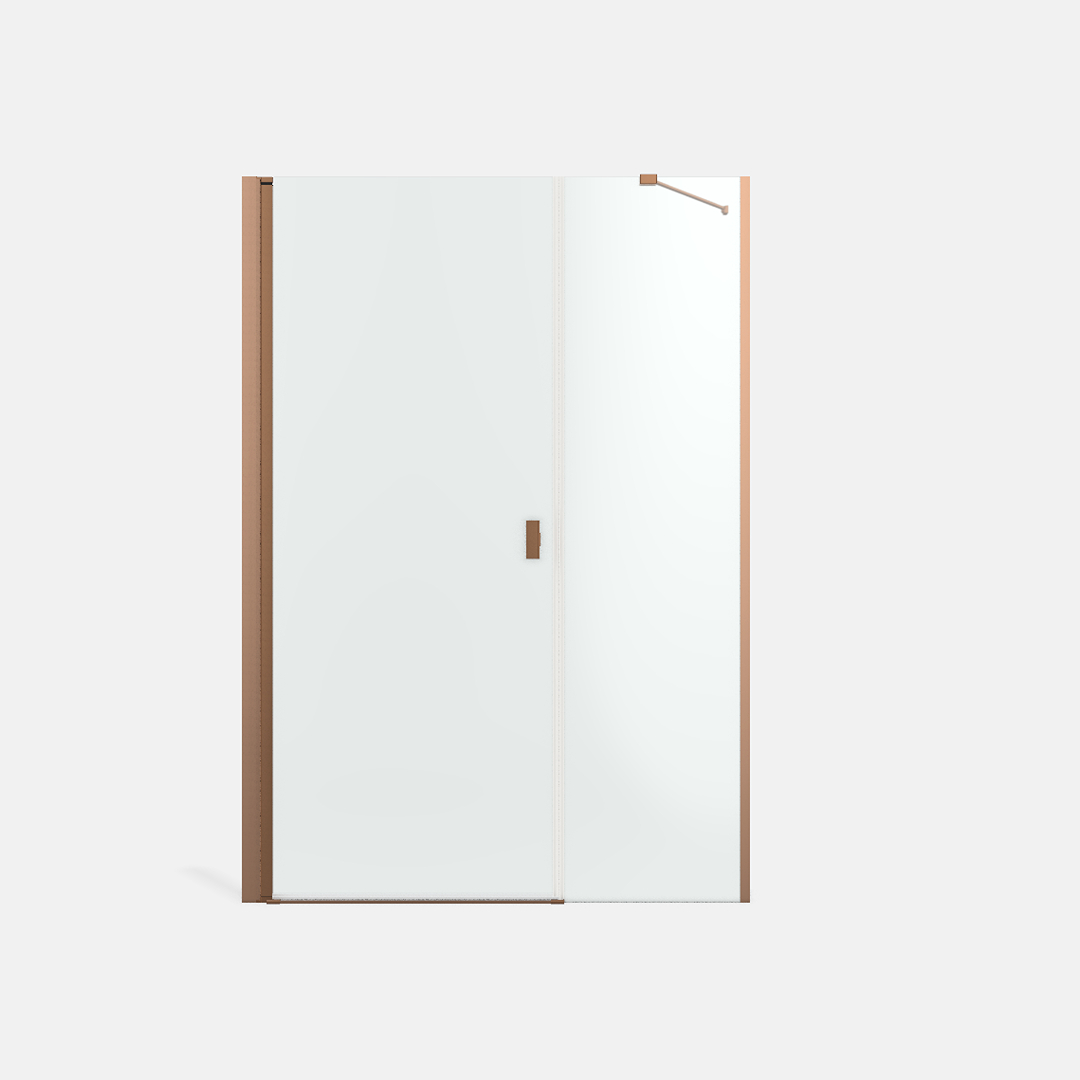 Noma 45 svängdörr vänster med sidopanel 1000mm 6mm glas med borstad kopparprofiler