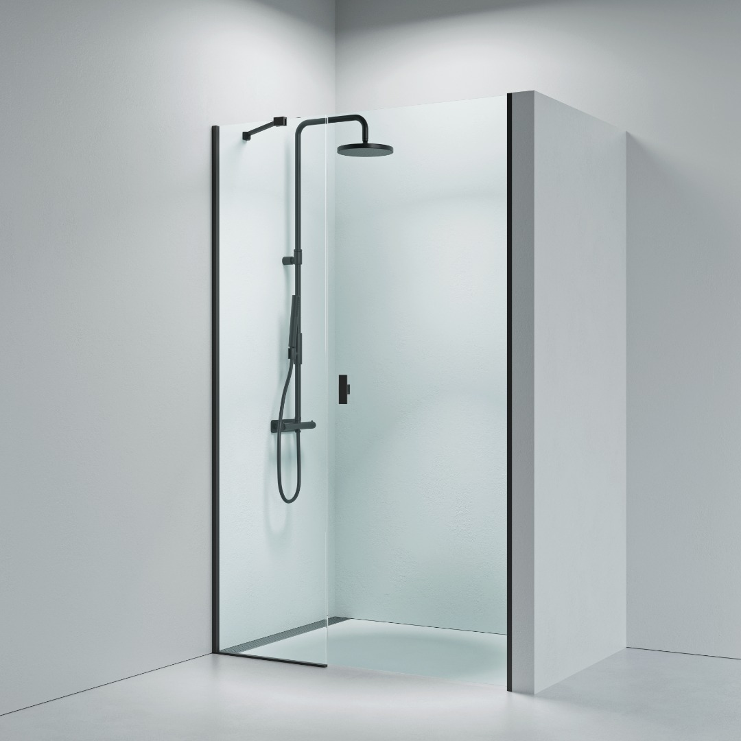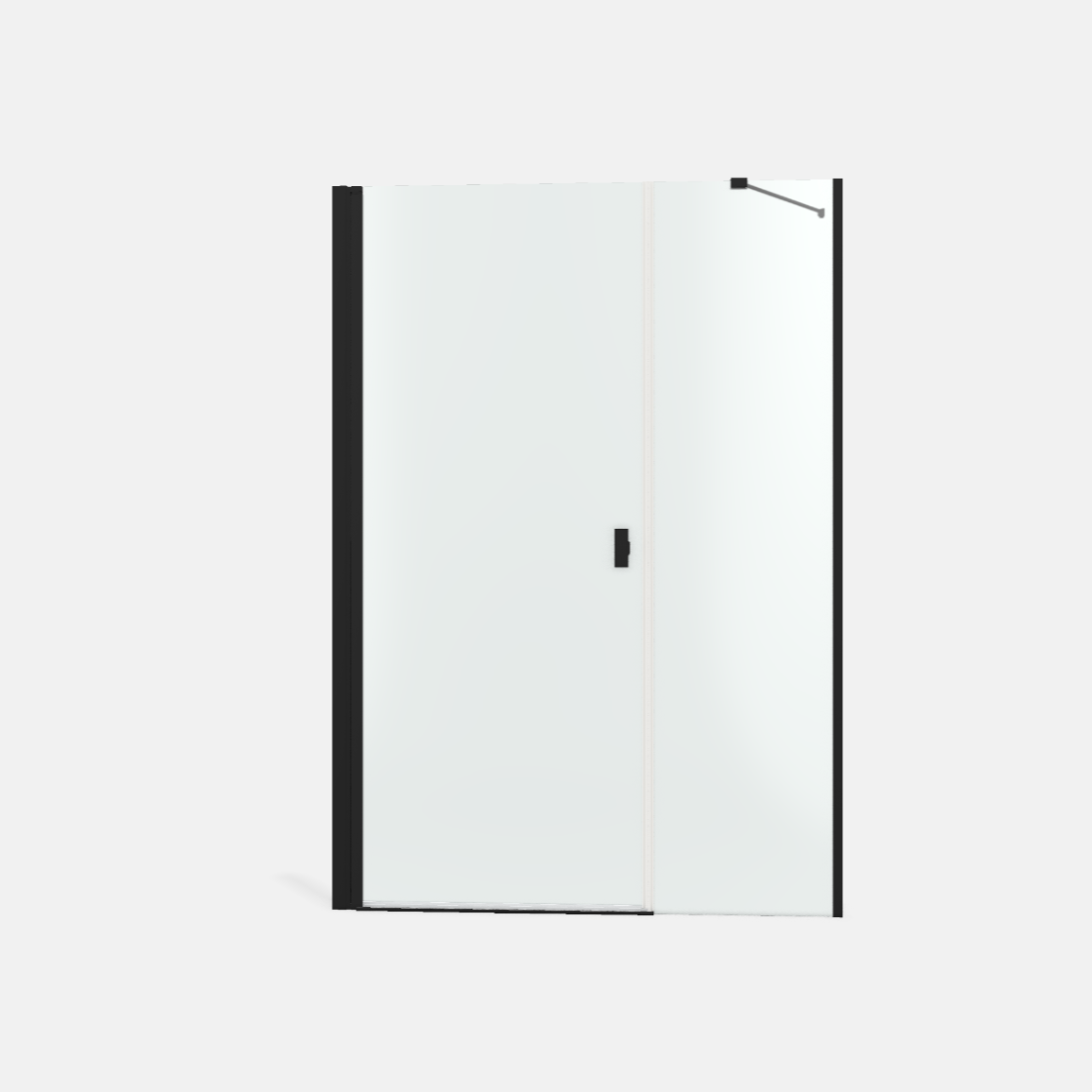 Noma 45 svängdörr vänster, med sidopanel 1100mm 6mm glas med matta svarta profiler