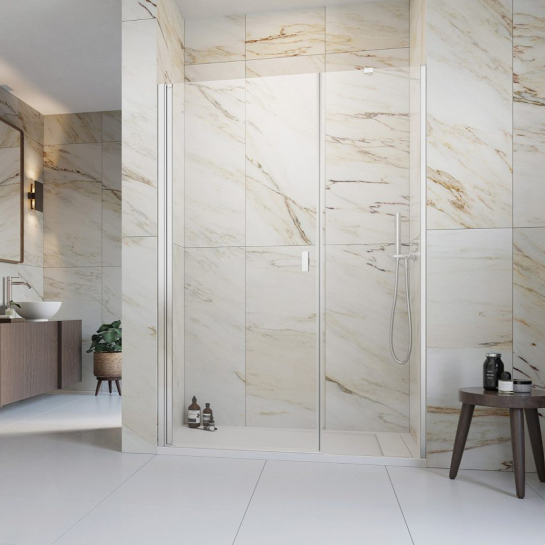 Noma 45 svängdörr vänster med sidopanel 1200mm 6mm glas med kromprofiler