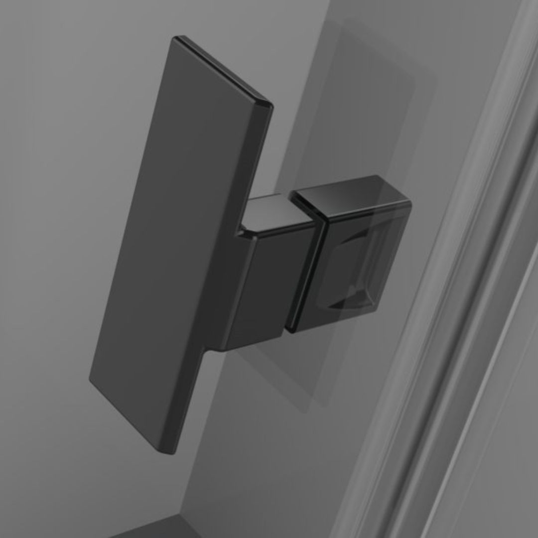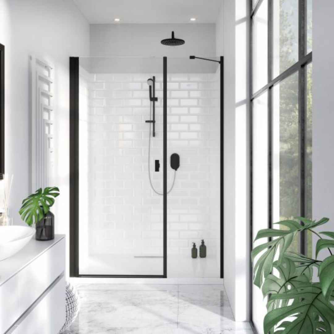Noma 45 svängdörr vänster, med sidopanel 1300mm 6mm glas med matta svarta profiler