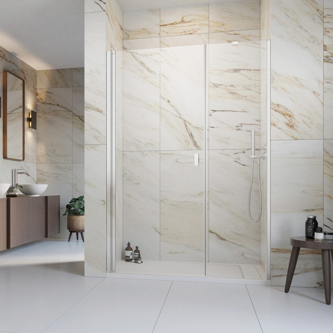 Noma 45 svängdörr vänster med sidopanel 1400mm 6mm glas med kromprofiler